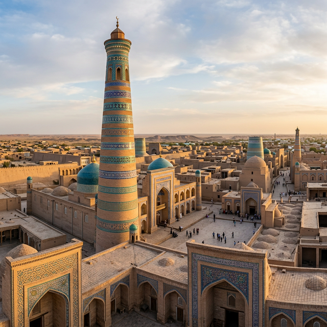 Хива — уникальный город-заповедник, где время словно остановилось. Внутренние стены Ичан-Калы хранят целый средневековый город с минаретами, мечетями, медресе и дворцами, внесённый в список ЮНЕСКО.